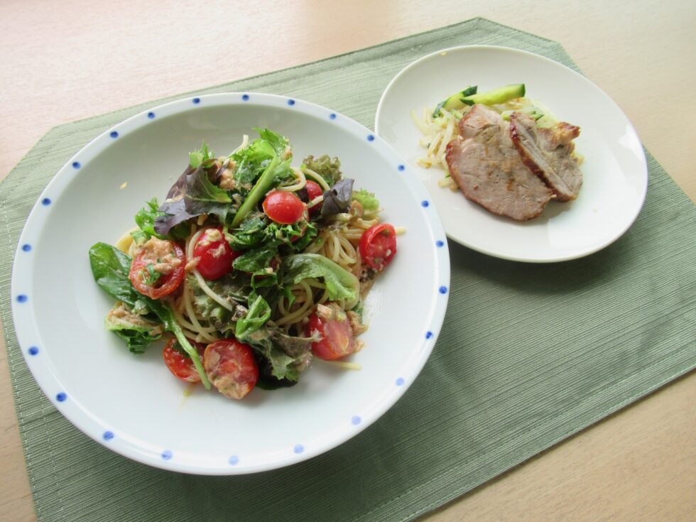 ツナを加え、夏野菜もたっぷりで爽やかにいただきました。