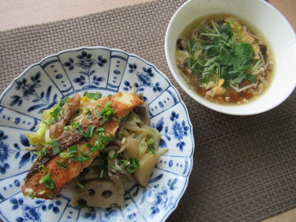 『フライパンで秋野菜たっぷり鮭のちゃんちゃん焼き』
