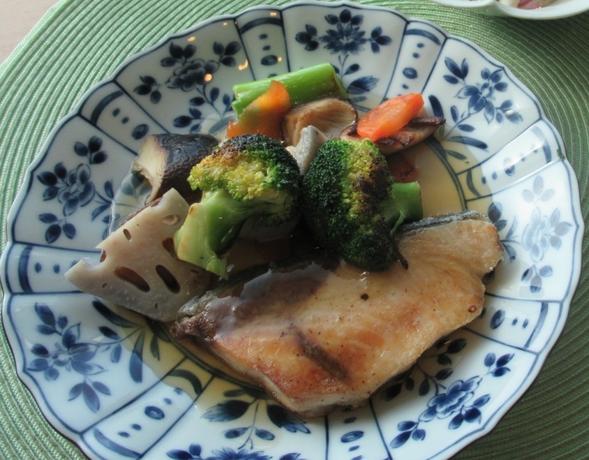ブリと冬野菜の甘酢あんかけは甘酢が薄味で優しい味でしたが、隠し味にオイスターソースを少し入れることでコクが出て、とてもまろやかでおいしい味付けになりました。冬野菜(レンコン、ブロッコリーなど)は、茹でずにレンジで加熱することにより、野菜それぞれの味が際立ちました。