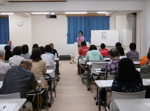 1月に引き続き、5月17日に第2回「駅ホームからの転落を考えるつどい」を開催し、市町村職員、点字や朗読サークルの方など68名が来られました。ポスターを見たと城陽市議会議員にも来てもらえました。