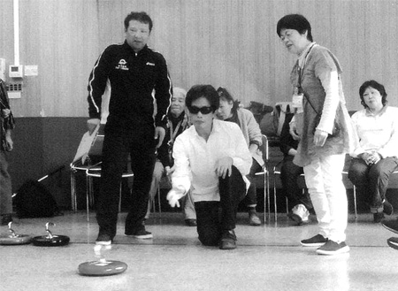 あり、賑やかなカローリング体験となりました。スポーツ推進委員の方は、視覚に障害を
